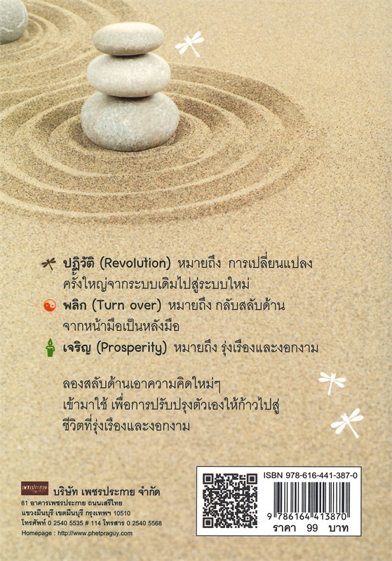 ปฏิวัติ (Revolution) หมายถึง การเปลี่ยนแปลงครั้งใหญ่จากระบบเดิมไปสู่ระบบใหม่ พลิก (Turn over) หมายถึง กลับสลับด้านจากหน้ามือเป็นหลังมือ เจริญ (Prosperity) หมายถึง รุ่งเรืองและงอกงาม ลองสลับด้านเอาความคิดใหม่ ๆ เข้ามาใช้ เพื่อการปรับปรุงตัวเองให้ก้าวไปสู่ชีวิตที่รุ่งเรืองและงอกงาม