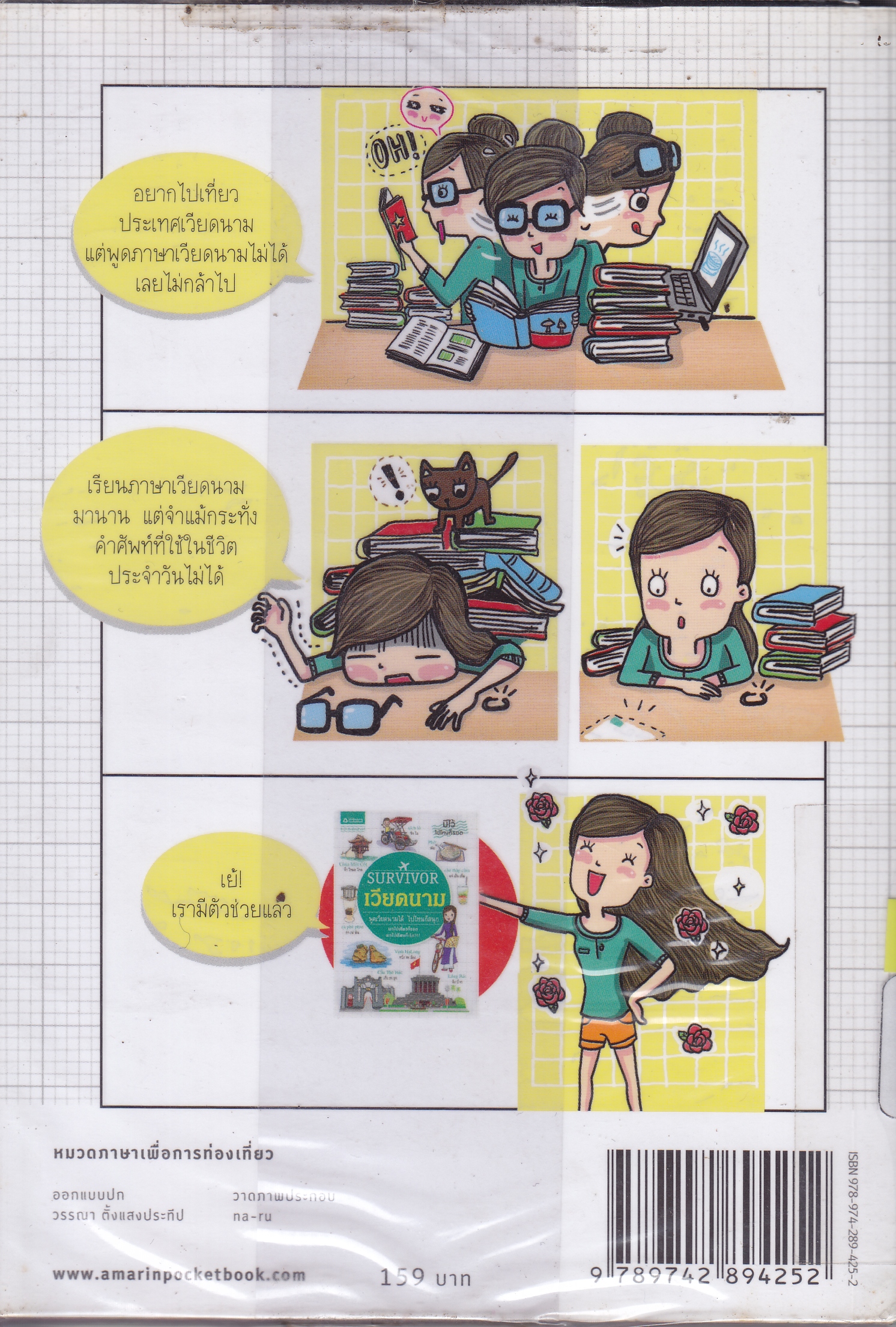 หนังสือสอนภาษาเชิงท่องเที่ยวชุด Survival เป็นหนังสือสอนภาษาแนวใหม่ที่อ่านง่ายและใช้ได้จริง เพียงปลายนิ้วสัมผัสเมื่อเกิดความสงสัยหรือต้องการความช่วยเหลือเพียงชี้ลงไปในคำศัพท์และรูปภาพที่ต้องการสื่อกับคนท้องถิ่นในประเทศนั้นๆ เหมาะสำหรับผู้ที่ไม่มีพื้นฐานทางภาษาแต่ต้องการเดินทางไปท่องเที่ยว เรียนต่อ หรือสนใจในภาษาเวียดนาม แบ่งเนื้อหาบทสนทนาออกเป็นหมวดๆ เพื่อให้ง่ายต่อการใช้งานเริ่มตั้งแต่ข้อมูลพื้นฐานของประเทศ การเดินทาง ที่พัก อาหาร สถานที่ท่องเที่ยวคำทักทายไปจนถึงเหตุด่วนและเรื่องฉุกเฉิน ที่รับรองได้ว่าหากคุณมีเล่มนี้รับรองความ Survival แน่นอน