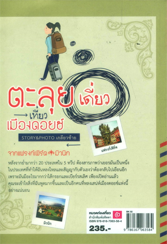 หลังจาก "เกลียวซ้าย" ย่ำมากว่า 20 ประเทศใน 5 ทวีป เธอก็ค้นพบว่า "เยอรมัน" เป็นหนึ่งในประเทศที่ทำให้หลงไหลและสัญญากับตัวเองว่าต้องกลับไปเยือนอีก เพราะมันมีอะไรมากกว่าไส้กรอกและเบียร์รสเลิศ ครั้งนี้เธอจึงออกเดินทางอีกครั้ง ด้วยการแบกเป้ตะลุยเดี่ยว แล้วเก็บเกี่ยวประสบการณ์ที่น่าสนใจต่างๆ มาบอกเล่ากับคุณผู้อ่าน เรื่องราวสนุกๆ ทั้งหลงทาง พบผู้คน และเรียนรู้หลากหลายครบทุกรส โดยเริ่มตะลอนจากเมืองท่าเศรษฐกิจและศูนย์กลางแฟชั่น แฟรงก์เฟิร์ต ล่องแม่น้ำไรน์ชมปราสาทโบราณลัดเลี้ยวลงใต้ตามเส้นทาง Romantic Road อันโด่งดัง พร้อมข้อมูลการเดินทางท่องเที่ยว ที่กิน ที่พัก แบบเจาะลึก ซึ่งผู้อ่านสามารถใช้เตรียมตัวสำหรับเดินทางจริงได้ด้วยตัวเอง